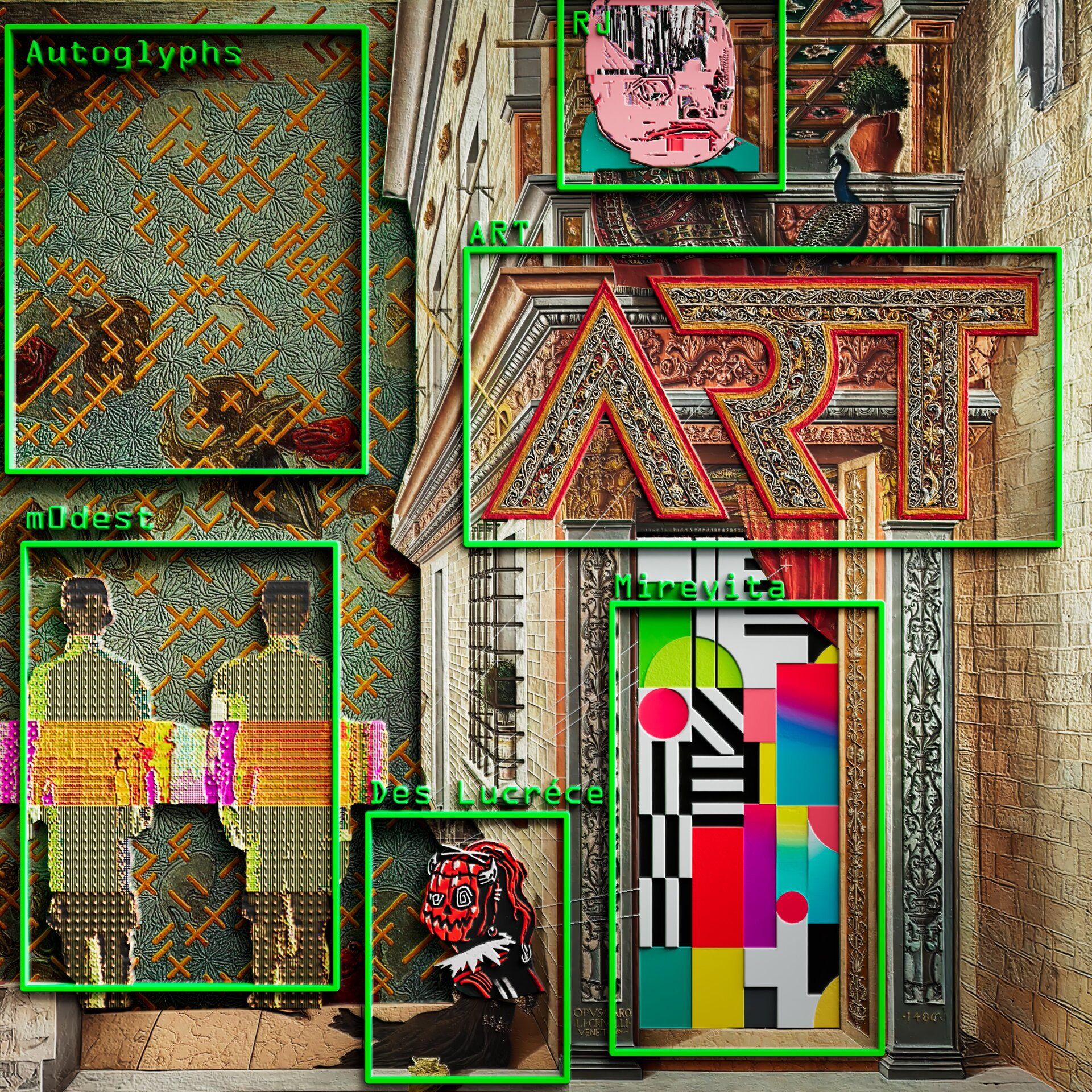 The interactive generative collection of 666 artworks “illustrates how memory is deceptive, how it mutates and distorts”. Each viewer interaction triggers the artworks to rewrite themselves.