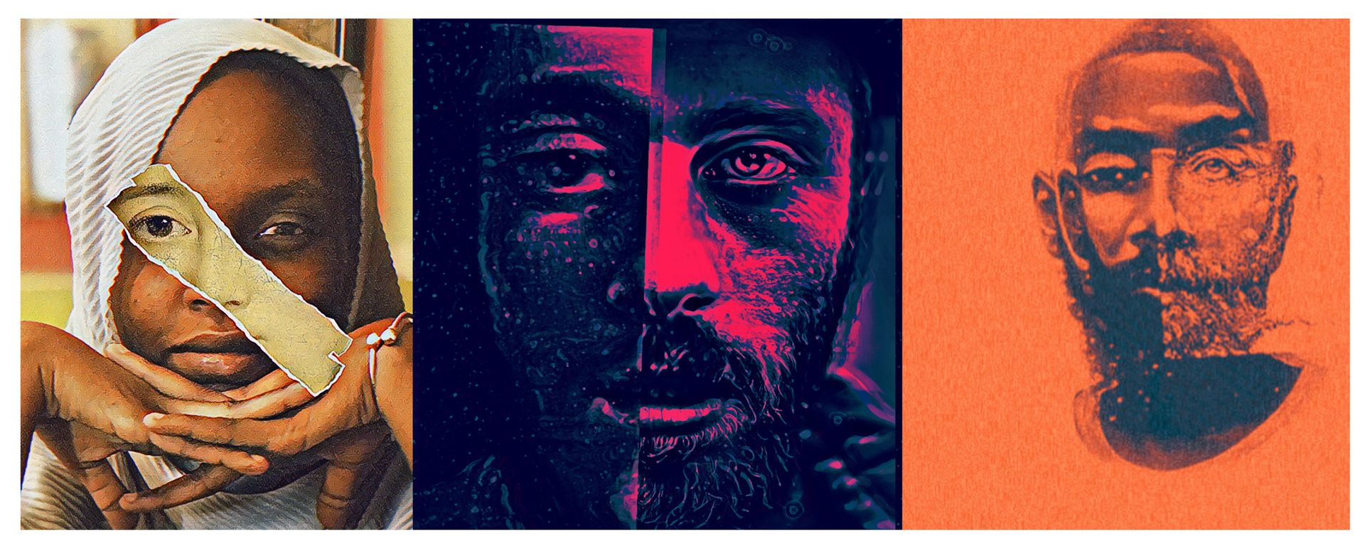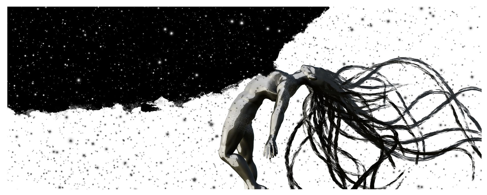 The moment he spoke those words, he saw the artwork complete. A character materialized: half ash-gray, half white, head down. A red line cut across its mouth. In Procreate, he added his signature strands.