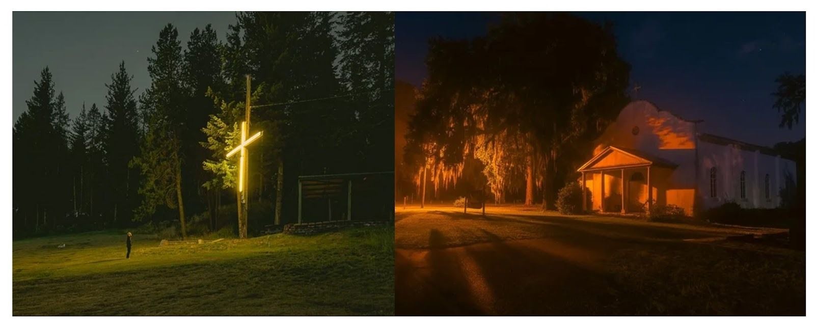 The South isn't backdrop in his work. It's character. Swamps. Churches. Barns with windmills and old cars. He shoots in the Black Forest of Germany because its folklore rhymes with his own obsessions, but he always returns home.
